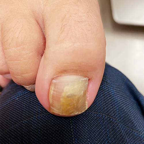 조갑 진균증, 또는 손발톱 진균증이라고 불리며, 곰팡이류의 피부사상균이 발톱에 감염되어 발생하는 질환입니다. 이로 인해 발톱이 두꺼워지고 변색되며, 심한 경우 주변 피부에 염증을 일으킬 수 있습니다.