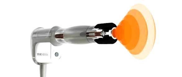 파장을 한 지점에 집중시켜 관절의 심부까지 파장을 보낼 수 있습니다. 주로 관절, 뼈 돌출부와 같은 국소부위에 적용하는 타입입니다.